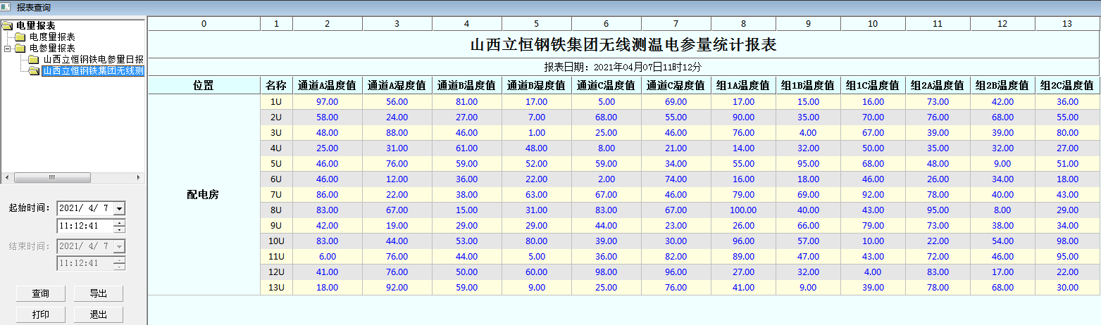 5.3運(yùn)行報(bào)表:查詢及打印各測(cè)溫點(diǎn)指定時(shí)間的溫度數(shù)據(jù)。
