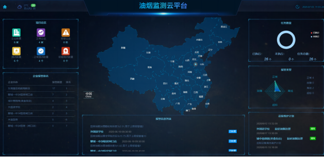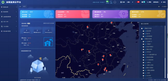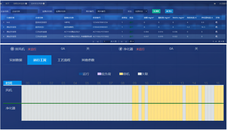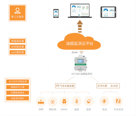 油煙在線監測系統,不但實現實時顯示統計凈化器川清潔狀態、凈化器開關狀態、風機開關狀態、