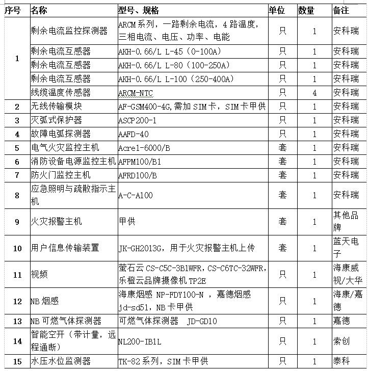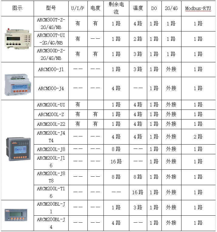 注:以下配置為針對1個回路選型,其中剩余電流互感器應根據現場回路電流大