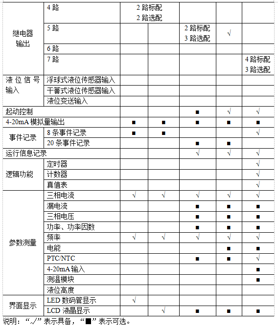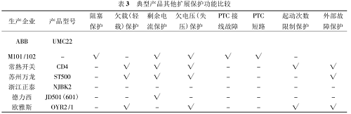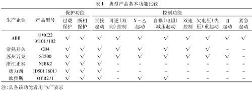 目前,企業生產的電動機保護器典型產品基本功能比較如表 1 所示。