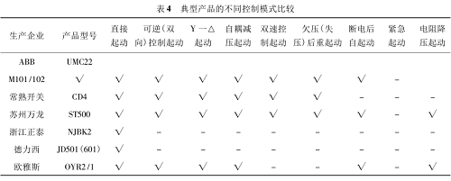 由表1比較說明,市場上供應的產品基本保護功能均齊全,在發生過電流保護時可報警或動作。但對于基本控制功能,許多產品僅具備直接起動的功能,也即僅僅能替代有觸點的起動器使用。而更多的企業充分發揮電子技術發展的優勢,研發了通過軟件實現的多種控制模式,滿足不同負載需求。特別是自起動模式,在系統恢復供電后,可立刻判斷哪些電動機在之前處于運行狀態,即按規定的延時時間后完成自動起動運行;對于之前處于停車狀態的,則不會自動起動。因此,可以免去值班操作人員很多不必要的麻煩。又如緊急起動模式,在發生如需快速排除污染氣體等突發事件時,需刪除原先設置的人為延時,滿足立刻起動有關電動機運行的要求。