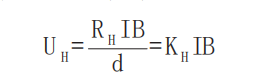 式中:RH是霍爾系數(shù)(是由材料性質(zhì)決定的一個常數(shù)),對于金屬導(dǎo)體而言,RH=1/nq(n為載流子濃度或自由電子濃度,q為電子電量。),I為通過器件的電流,B為垂直于I的磁感應(yīng)強(qiáng)度,d為導(dǎo)體的厚度,KH=RH/d稱為霍爾元件的靈敏度,它是表征單位磁感應(yīng)強(qiáng)度和單位電流時的霍爾電壓輸出大小的一個重要參數(shù),一般希望它越大越好。若保證式(1)中I不變,那么,在一定條件下,就可通過測量霍爾電壓UH來推算出磁感應(yīng)強(qiáng)度B的大小,并由此建立了磁場與電壓信號的聯(lián)系。根據(jù)這一關(guān)系,人們研制出了霍爾器件。
