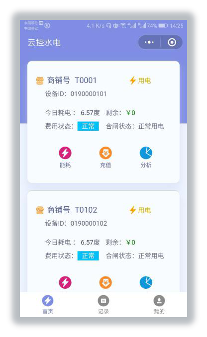 在線支付:商戶可以通過小程序或者微信公眾號實現在線自助充值水電費,也可以實時關注商鋪用水用況。