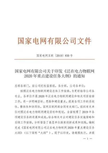 2019年12月2日國家電網有限公司(下稱“國網公司”)發布了國家電網互聯[2019]850號文《泛在電力物聯網2020年重點建設任務大綱》,對建設電力泛在物聯網有關工作進行部署,重點開展能源生態、客戶服務、生產運行、經營管理、企業中臺、智慧物聯、基礎支撐、技術研究八個方向40項重點建設任務,內容摘錄如下: