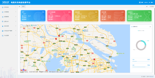 ① 安全預(yù)警 對(duì)平臺(tái)連接的所有充電樁狀態(tài)進(jìn)行監(jiān)視,充電樁發(fā)生異常情況時(shí)可通過(guò)APP、短信及時(shí)向運(yùn)營(yíng)人員發(fā)出報(bào)警信號(hào),及時(shí)消除火災(zāi)隱患。 ② 交易結(jié)算管理 平臺(tái)為運(yùn)營(yíng)方提供充電價(jià)格策略管理,預(yù)收費(fèi)管理,賬單管理,營(yíng)收和財(cái)務(wù)相關(guān)報(bào)表等,支持投幣、刷卡和掃碼充電。