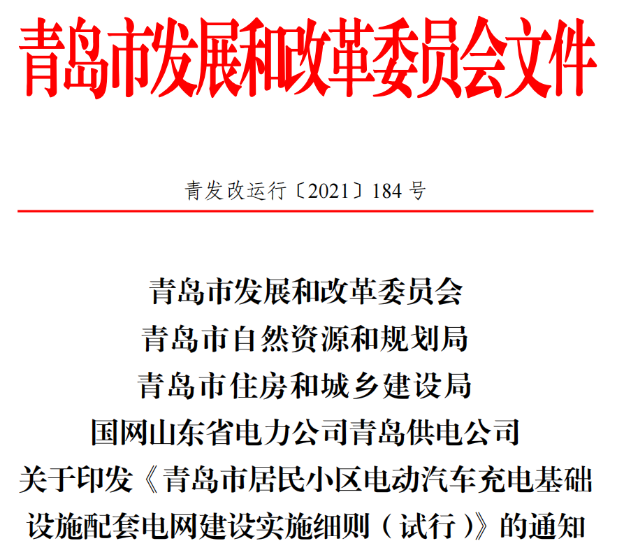 (2)青島市發展和改革委員會 關于印發《青島市居民小區電動汽車充電基礎