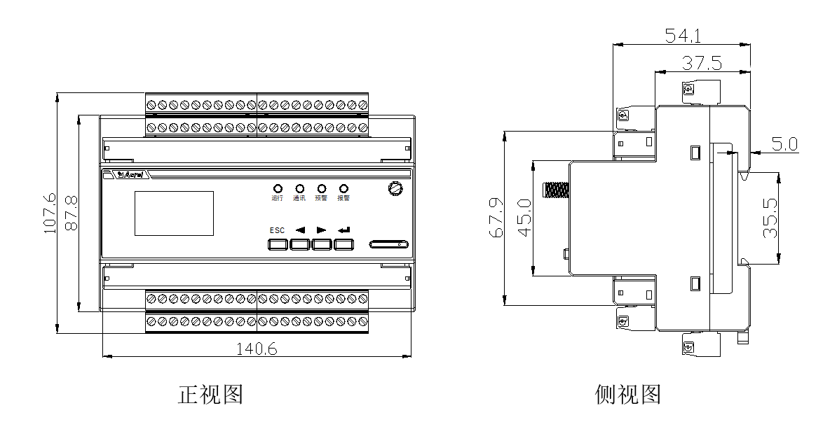 (2)剩余電流監(jiān)測儀外形與安裝尺寸如下圖所示。(單位:mm)