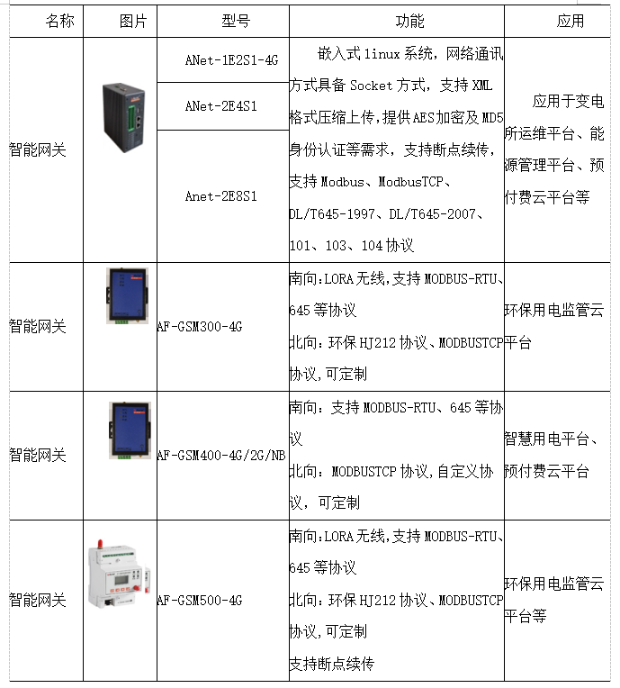 安科瑞針對物聯網應用開發了多款智能網關,采用嵌入式系統和邊緣計算技術,現場采集和存儲終端設備數據,并根據云平臺的需要,采用不同的協議和云平臺對接。所有數據采集、計算、異常報警觸發邏輯均在網關就地設置,網絡故障時數據存儲在本地,網絡恢復后補傳數據,斷點續傳,提高數據可靠性。