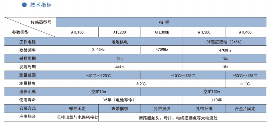 適用于高低壓開關(guān)柜內(nèi)電纜接頭、斷路器觸頭、刀閘開關(guān)、高壓電纜中間頭、干式變壓器、低壓大電流等設備的溫度監(jiān)測。