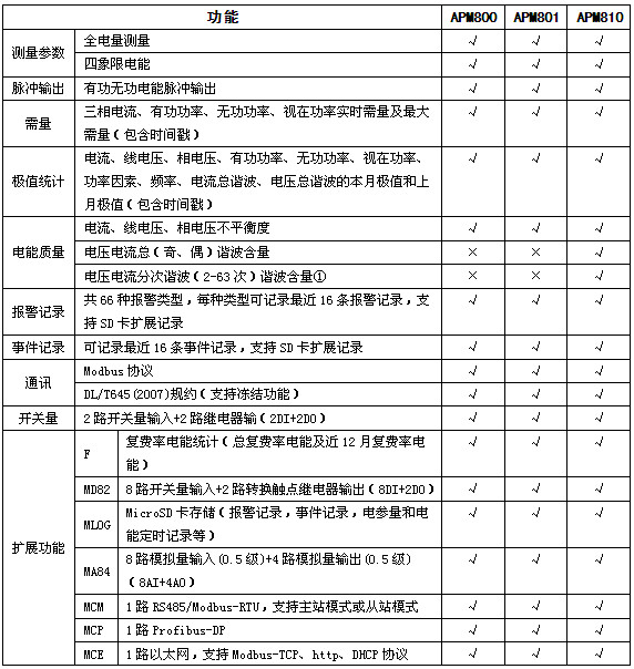 APM系列網絡電力儀表按IEC標準設計,具有全電量測量,電能統計,電能質量分析及網絡通訊等功能,主要用于對電網供電質量的綜合監控診斷及電能管理。該系列儀表采用了模塊化設計,當客戶需要增加開關量輸入輸出,模擬量輸入輸出,SD卡記錄,以太網通訊時,只需在背部插入對應模塊即可。