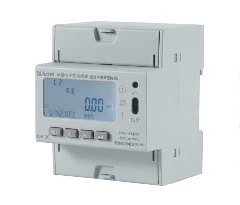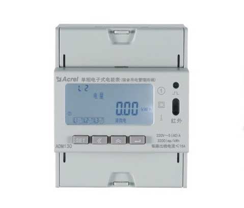 ADM130 單相電子式電能表(宿舍用電管理終端)主要用于計量單相交流用電,終端可以一路火線進線,三路火線并聯輸出分別計量照明、插座、空調回路,可進行預付費控制