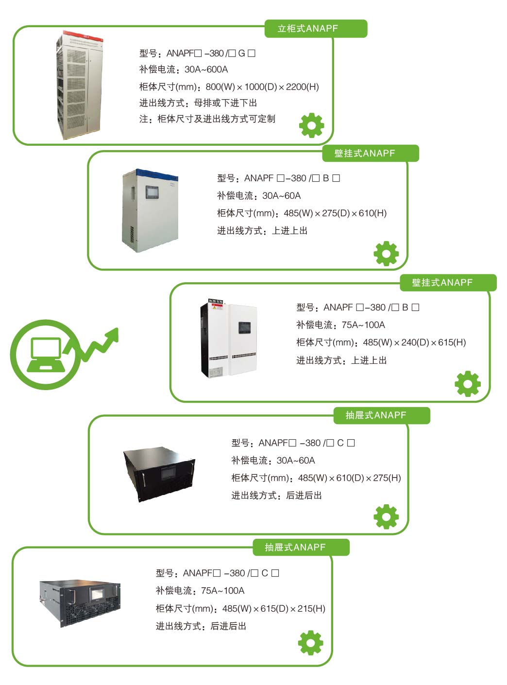 ANAPF系列有源電力濾波器通過電流互感器采集系統(tǒng)諧波電流,經(jīng)控制器快速計算并提取各次諧波電流的含量,產(chǎn)生諧波電流指令,通過功率執(zhí)行器件產(chǎn)生與諧波電流幅值相等方向相反的補(bǔ)償電流,并注入電力系統(tǒng)中,從而抵消非線性負(fù)載所產(chǎn)生的諧波電流。