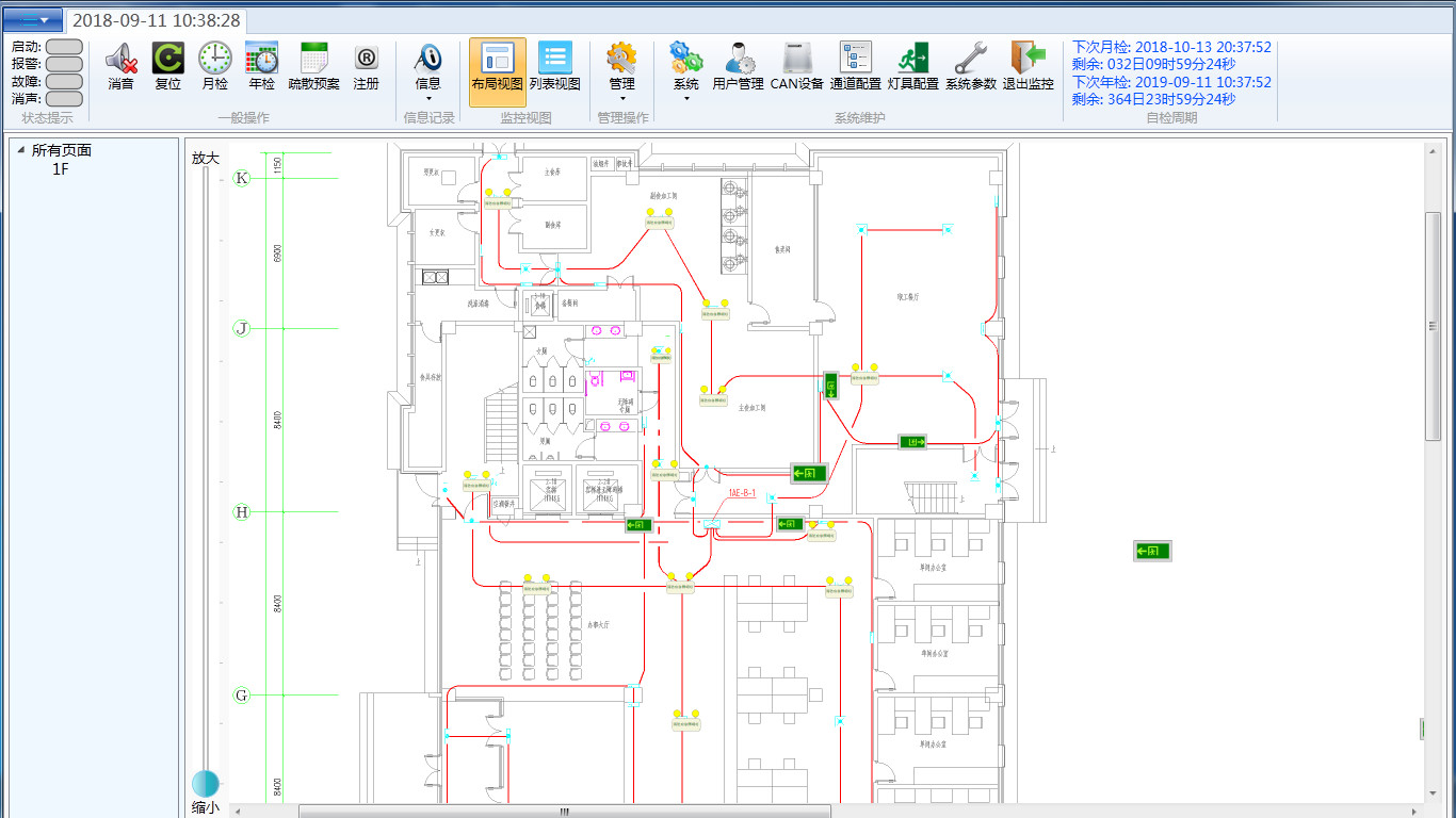 控制器通過(guò)總線網(wǎng)絡(luò)實(shí)時(shí)監(jiān)控各個(gè)終端,在險(xiǎn)情發(fā)生時(shí),自動(dòng)將信息指令發(fā)布到每個(gè)終端,終端收到指令之后自動(dòng)開(kāi)始工作,如頻閃、變向、開(kāi)、滅燈等工作,實(shí)時(shí)指示最佳、最安全的疏散路線。 |