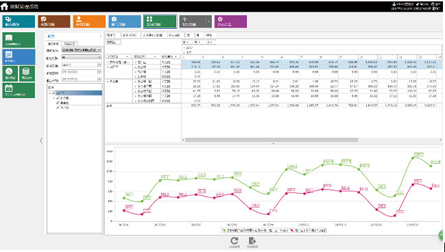 系統可按使用年份統計建筑物各分類能耗——電、水、氣、集中供熱、集中供冷以及其它能源消耗量,自動折算成相應的標準煤消耗量,從而反映建筑物當年各分類能耗用能和綜合能耗。系統以餅圖形式展示建筑4大用電分項能耗的占比情況。系統以曲線圖形展現各類能耗的消耗的消耗趨勢,便于業主方實時直觀掌握能源消耗情況。